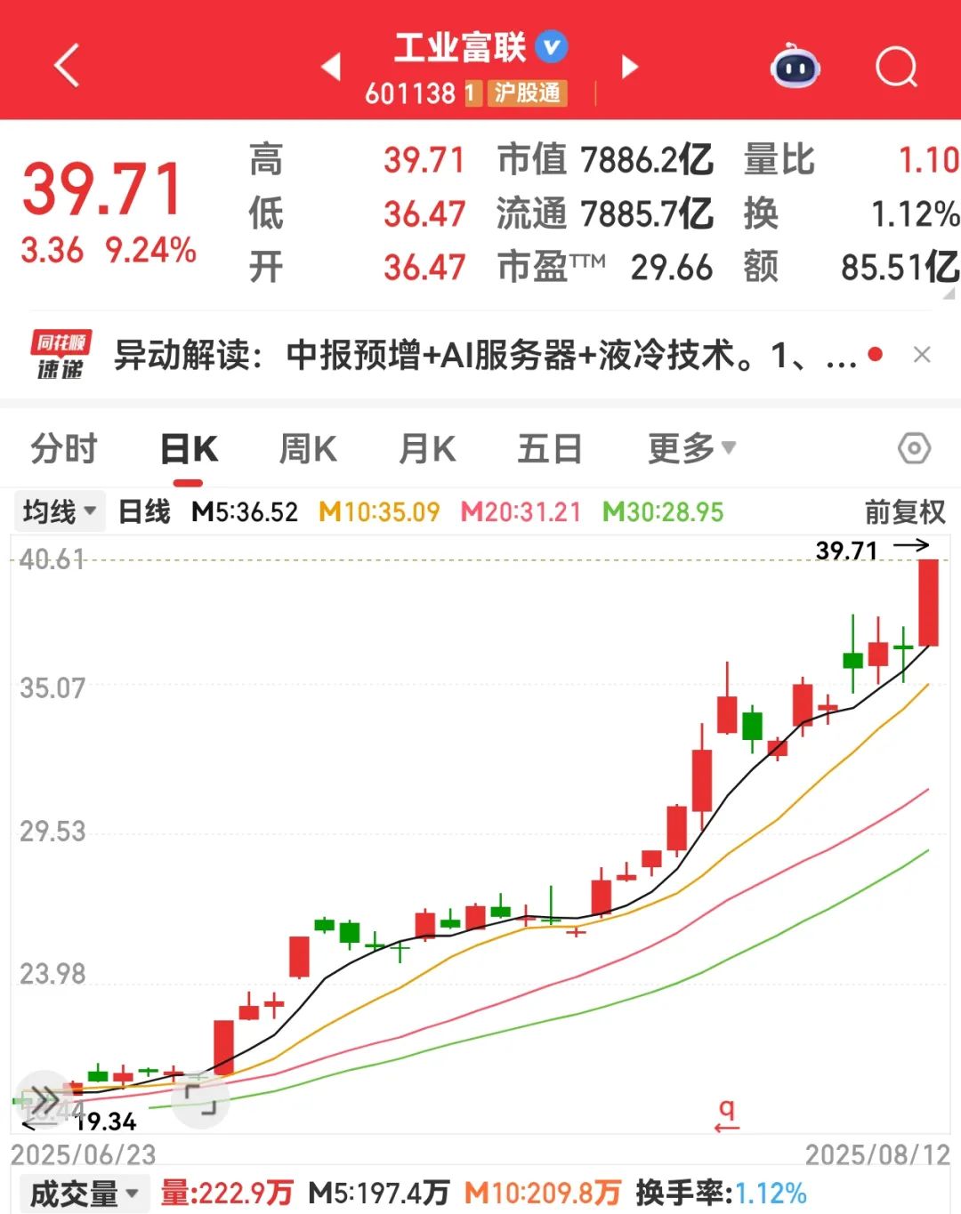 AI题材10倍股批量出现,有基本面的支撑。比如新易盛预计上半年净利达到37亿元—42亿元,同比增长327.68%—385.47%;工业富联上半年营收净利增速均超过35%。