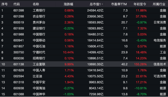 值得一提的是,今日A股尾盘,工业富联股价强势涨停,总市值突破万亿大关,超越中国人寿,跻身A股市值榜前十名。有分析指出,市场资金追捧工业富联的核心逻辑是,其在全球AI算力军备竞赛中的关键卡位,且公司核心业务上半年的盈利能力大超市场预期。