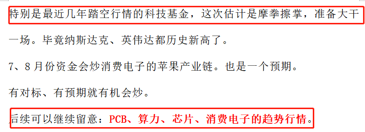 目前科技股走的是业绩补涨逻辑。那些一季度业绩好的,最近机构调研多的公司,半年报业绩大概率会更好,大家要好好把握。再加上位置低值得格局。