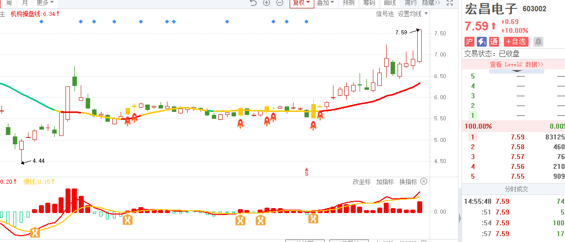 3)宏昌电子-四维操盘-近期出现火箭信号且底部量柱由绿转红