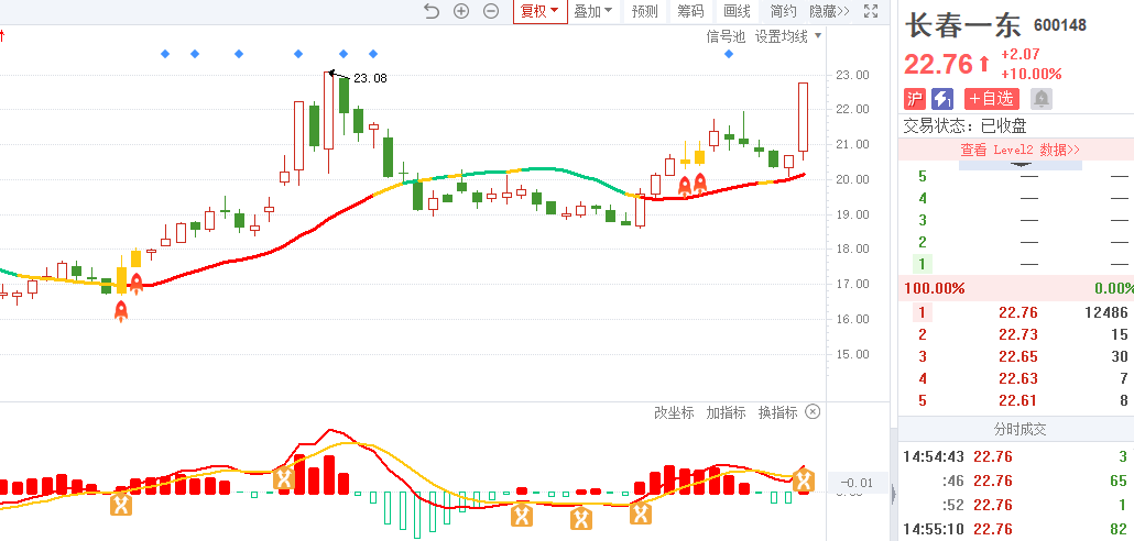 1)长春一东-四维操盘-近期出现火箭信号且底部量柱由绿转红