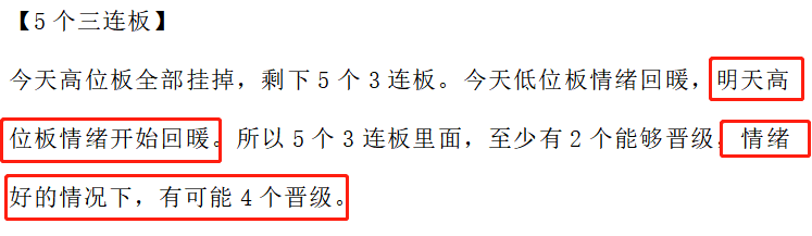 摘要:五个高位板晋级4个,短线情绪再度回暖?