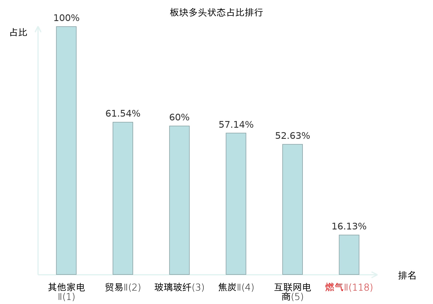全市场所有行业板块中主力多头状态占比排名中,其他家电Ⅱ板块位居第一。教育板块名次提升最快,较昨日上升50位。