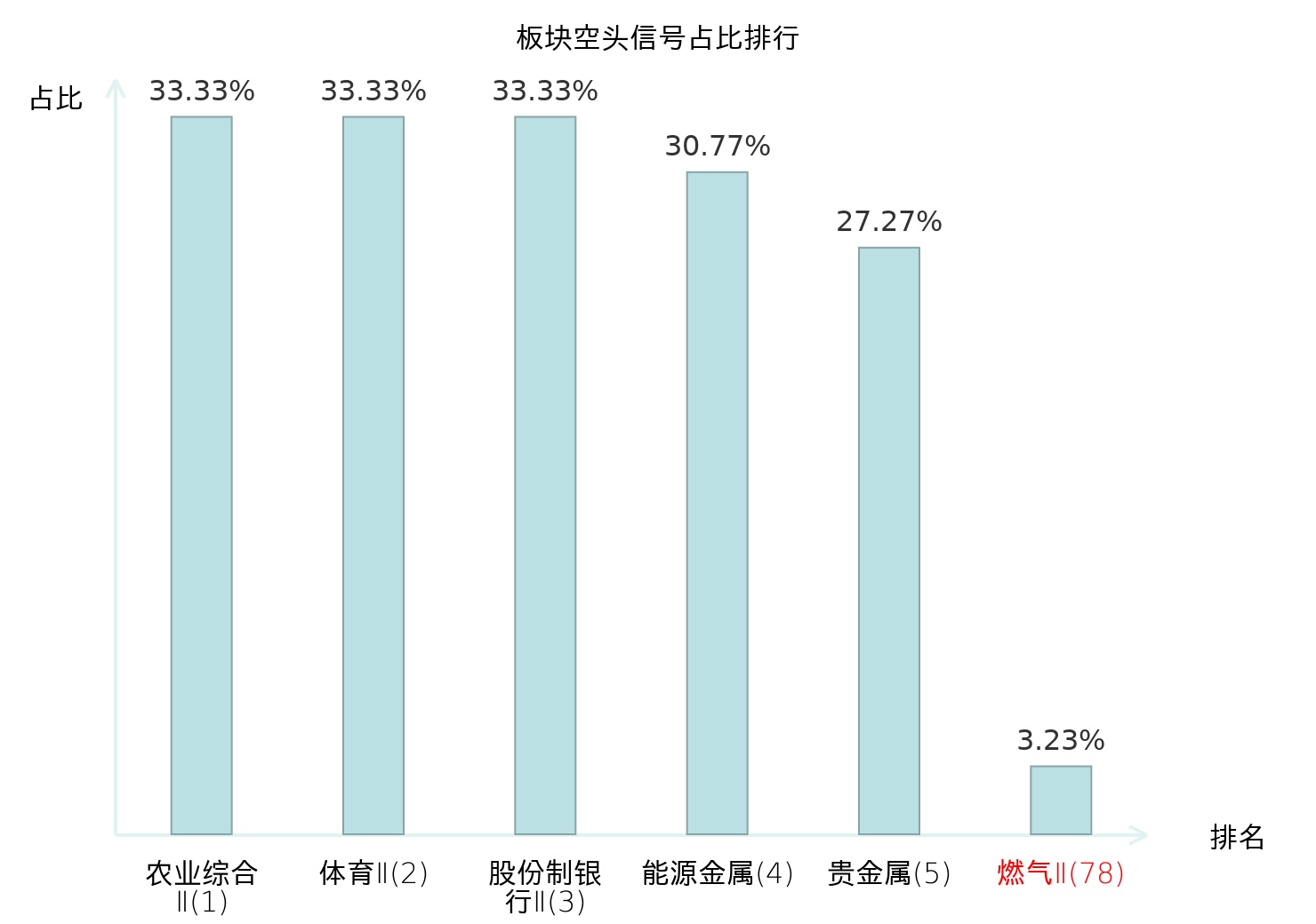 全市场所有行业板块中主力空头信号占比排名中,农业综合Ⅱ板块位居第一。出版板块名次提升最快,较昨日上升115位。