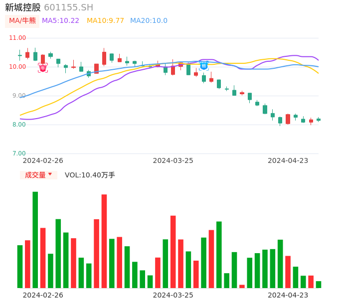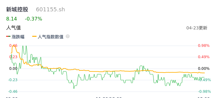 04月23日,新城控股收报8.14,股价涨幅-0.37%,成交金额8492.52万元,换手率0.46%。