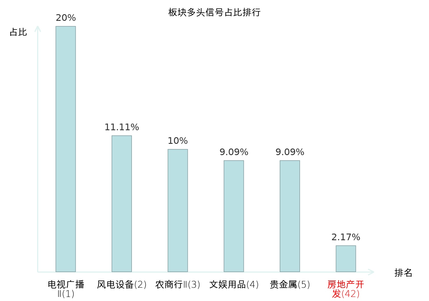 全市场所有行业板块中主力多头信号占比排名中,电视广播Ⅱ板块位居第一。农商行Ⅱ板块名次提升最快,较昨日上升112位。