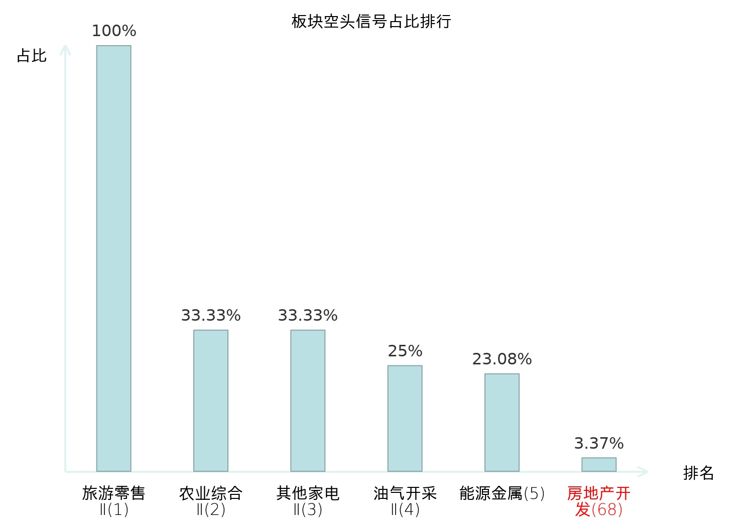 全市场所有行业板块中主力空头信号占比排名中,旅游零售Ⅱ板块位居第一。影视院线板块名次提升最快,较昨日上升105位。