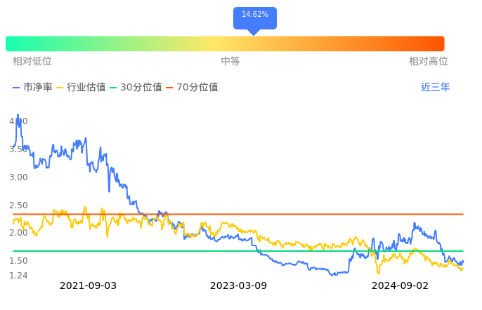 东航物流当前市净率PB为1.47,在所属的物流中,市净率PB排23,前五名分别为建发股份市净率0.39、瑞茂通市净率0.50、传化智联市净率0.59、厦门国贸市净率0.61、物产中大市净率0.63。东航物流当前市净率PB为1.47,超过近3年14.62%的历史数据。