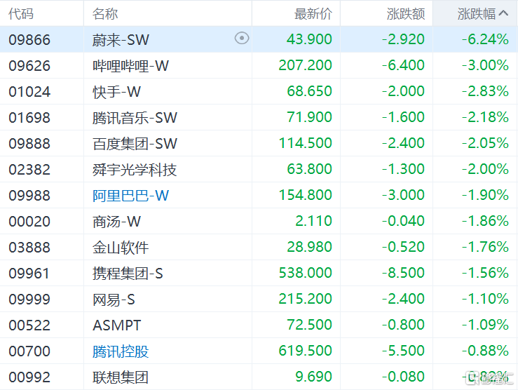 大型科技股走势分化,闪购与华为鸿蒙合作升级,美团大涨5.65%表现强势,京东涨超2%;快手跌近3%,百度跌2%,阿里巴巴跌1.9%,小米、腾讯飘绿。