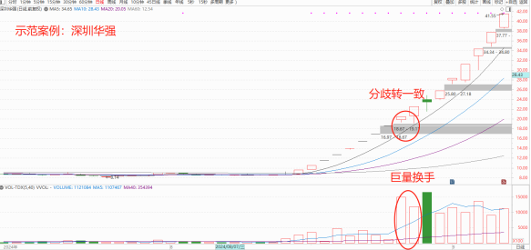 龙头股通常在板块启动时率先涨停,具有强大的领涨能力。它的涨幅和涨速往往远超同板块其他个股。龙头股一般具有较高的人气和市场关注度,成交量大、换手率高。龙头股的基本面通常较为优秀,具有行业领先地位、强大的盈利能力和成长潜力。及时发现龙头股:密切关注市场热点板块的动向,通过涨幅榜、换手率等指标筛选出潜在的龙头股。果断买入:一旦确认龙头股,要敢于在合适的时机果断买入。可以在龙头股首次涨停后的回调中买入,或者在其强势突破重要压力位时追涨买入。坚定持有:买入龙头股后,要坚定持有,不被短期的波动所影响。只要龙头股的上涨趋势没有改变,就不要轻易卖出。适时卖出:当龙头股出现明显的见顶信号时,如高位放量滞涨、换手率急剧增加、股价大幅下跌等,要及时卖出,锁定利润。 观察大盘的走势:大盘的涨跌对市场情绪有很大的影响。当大盘上涨时,市场情绪通常较为乐观;当大盘下跌时,市场情绪往往较为悲观。关注涨停板和跌停板的数量:涨停板数量多,说明市场情绪高涨;跌停板数量多,则表示市场情绪低落。分析成交量和换手率:成交量和换手率的大小反映了市场的活跃程度和投资者的参与热情。成交量大、换手率高,说明市场情绪较为热烈。情绪上升期:在市场情绪上升期,投资者的风险偏好较高,短线交易机会较多。此时可以积极参与龙头股的炒作,追涨买入强势股。情绪高潮期:当市场情绪时,要保持警惕,随时准备卖出股票。因为高潮过后往往是衰退期,股价可能会出现大幅下跌。情绪衰退期:在情绪衰退期,市场风险较大,投资者应减少操作,控制仓位。可以等待市场情绪企稳后再寻找机会。情绪冰点期:当市场情绪降至冰点时,往往是黎明前的黑暗。此时可以开始关注市场的变化,寻找潜在的机会,为下一轮情绪上升期做好准备。 金融科技龙头核心标的银之杰,叠加政策预期,金融科技新周期开启,放量涨停,开启连板模式。大金融证券龙头核心标的天风证券,大金融新周期开启,分歧转一致后,放量涨停,新的一波主升行情正式确立形成,开启连板模式。华为海思概念龙头核心标的深圳华强,分歧转一致后,放量涨停,新的一波主升行情正式确立形成,开启连板模式。总之,短线炒股高手的龙头战法和情绪把握,需要敏锐的市场洞察力、果断的决策能力和严格的风险控制意识。