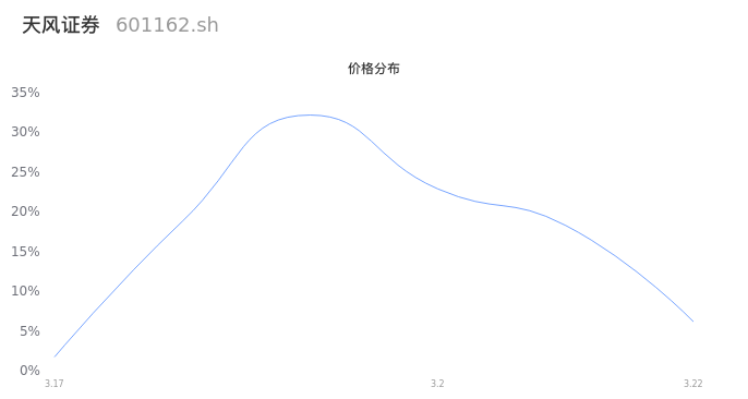 然后我们来看下当日成交的价格分布。经过分析发现,该股票当日成交价格波动低于10个最小波动价位,由于可以参考的样本量非常少,价格分布分析的结果不具有指导意义,下图仅供参考。