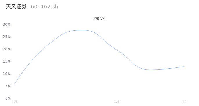 然后我们来看下当日成交的价格分布。经过分析发现,该股票当日成交价格波动低于10个最小波动价位,由于可以参考的样本量非常少,价格分布分析的结果不具有指导意义,下图仅供参考。