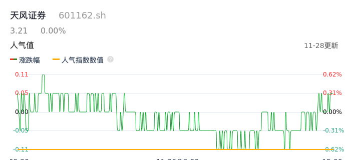 11月28日,天风证券收报3.21,股价涨幅0.00%,成交金额2.77亿元,换手率1.00%。