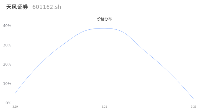 然后我们来看下当日成交的价格分布。经过分析发现,该股票当日成交价格波动低于10个最小波动价位,由于可以参考的样本量非常少,价格分布分析的结果不具有指导意义,下图仅供参考。