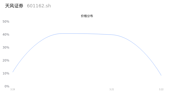 然后我们来看下当日成交的价格分布。经过分析发现,该股票当日成交价格波动低于10个最小波动价位,由于可以参考的样本量非常少,价格分布分析的结果不具有指导意义,下图仅供参考。