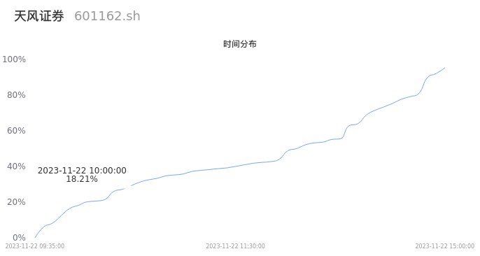 601162天风证券2023年11月22日成交121.93万手,成交金额4.03亿元,相较昨日缩量34.24万手,换手率1.41%,成交清淡。