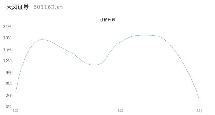 然后我们来看下当日成交的价格分布。经过分析发现,该股票当日成交价格波动低于10个最小波动价位,由于可以参考的样本量非常少,价格分布分析的结果不具有指导意义,下图仅供参考。