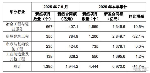 另外,公司今年1-9月新签合同额人民币7606.7亿元,同比降低14.7%。
