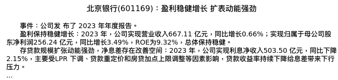 值得注意的是:2024年04月中国银河的张一纬分析师,首次发布关于北京银行的研究报告,标题为:北京银行(601169):盈利稳健增长 扩表动能强劲。