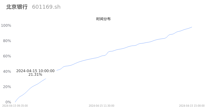 601169北京银行2024年04月15日成交86.80万手,成交金额4.90亿元,相较昨日缩量2.43万手,换手率0.41%,成交清淡。
