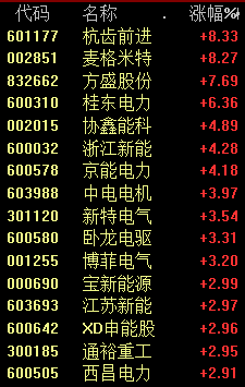 风电板块也走势活跃,麦格米特、杭齿前进等个股涨幅居前。