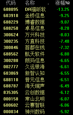 计算机应用板块中,福昕软件跌超13%、金桥信息等个股也大跌。