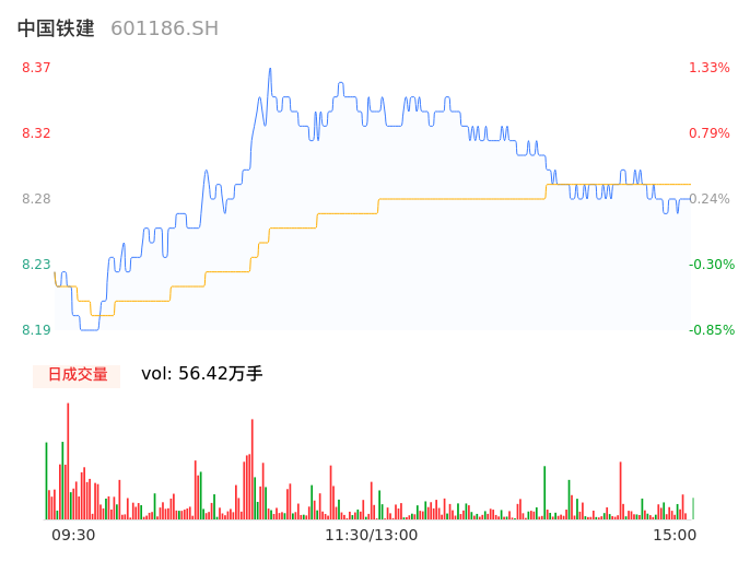04月11日,中国铁建收报8.27,股价涨幅0.12%,成交金额4.67亿元,换手率0.49%。