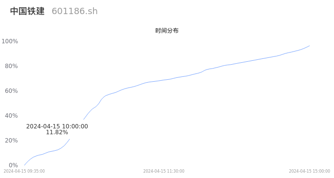 601186中国铁建2024年04月15日成交213.04万手,成交金额18.19亿元,相较昨日放量160.01万手,换手率1.85%,成交清淡。