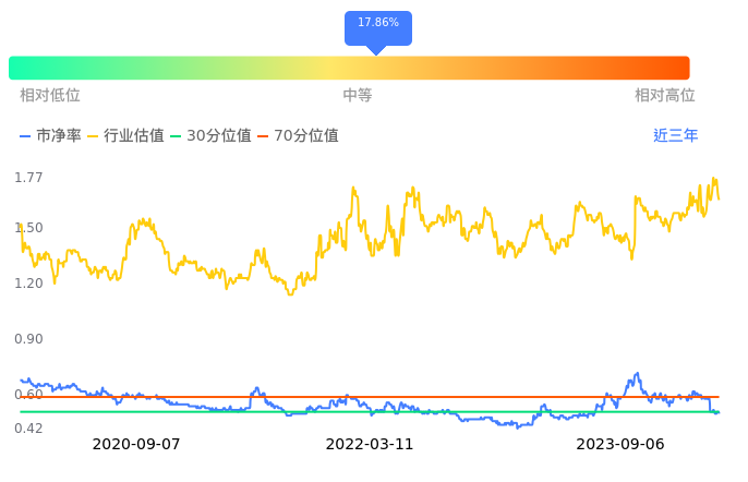 2023年09月07日,中国铁建下跌0.79%收于8.84,今日成交金额3.54亿元。下文将从市盈率PETTM、市净率PB、市现率3个角度去分析公司估值情况。