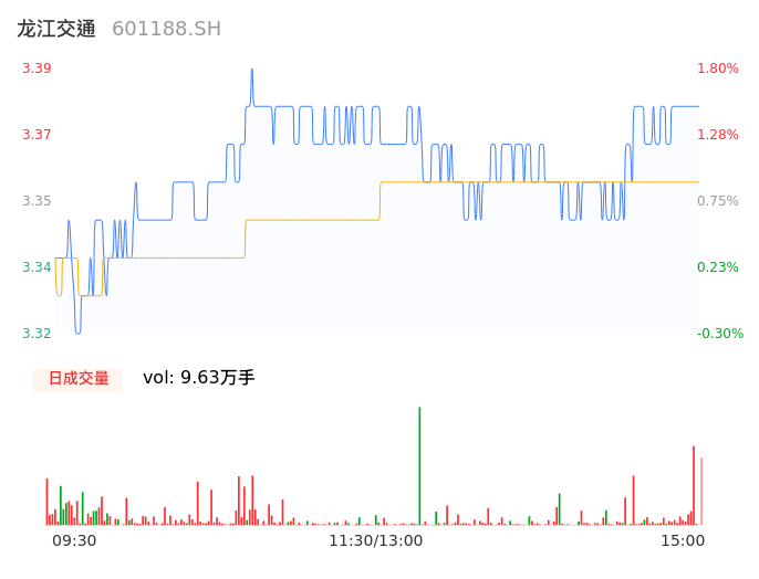 04月24日,龙江交通收报3.39,股价涨幅1.80%,成交金额3237.66万元,换手率0.73%。