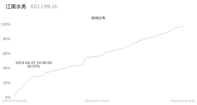 根据成交分布分析,该股票当天放量成交,成交清淡。时间上看,早盘前半小时成交量占据当天总成交量的28.03%;价格上看,成交呈现中间峰。成交分布分析主要研究股票成交的分布特性,不具有预测功能,请知悉。