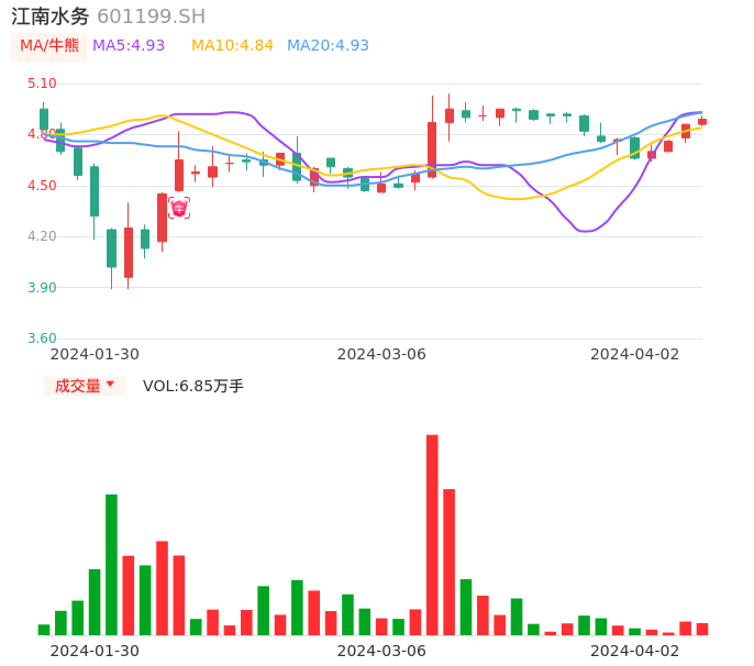 04月02日,江南水务收报4.89,股价涨幅0.62%,成交金额3340.90万元,换手率0.73%。