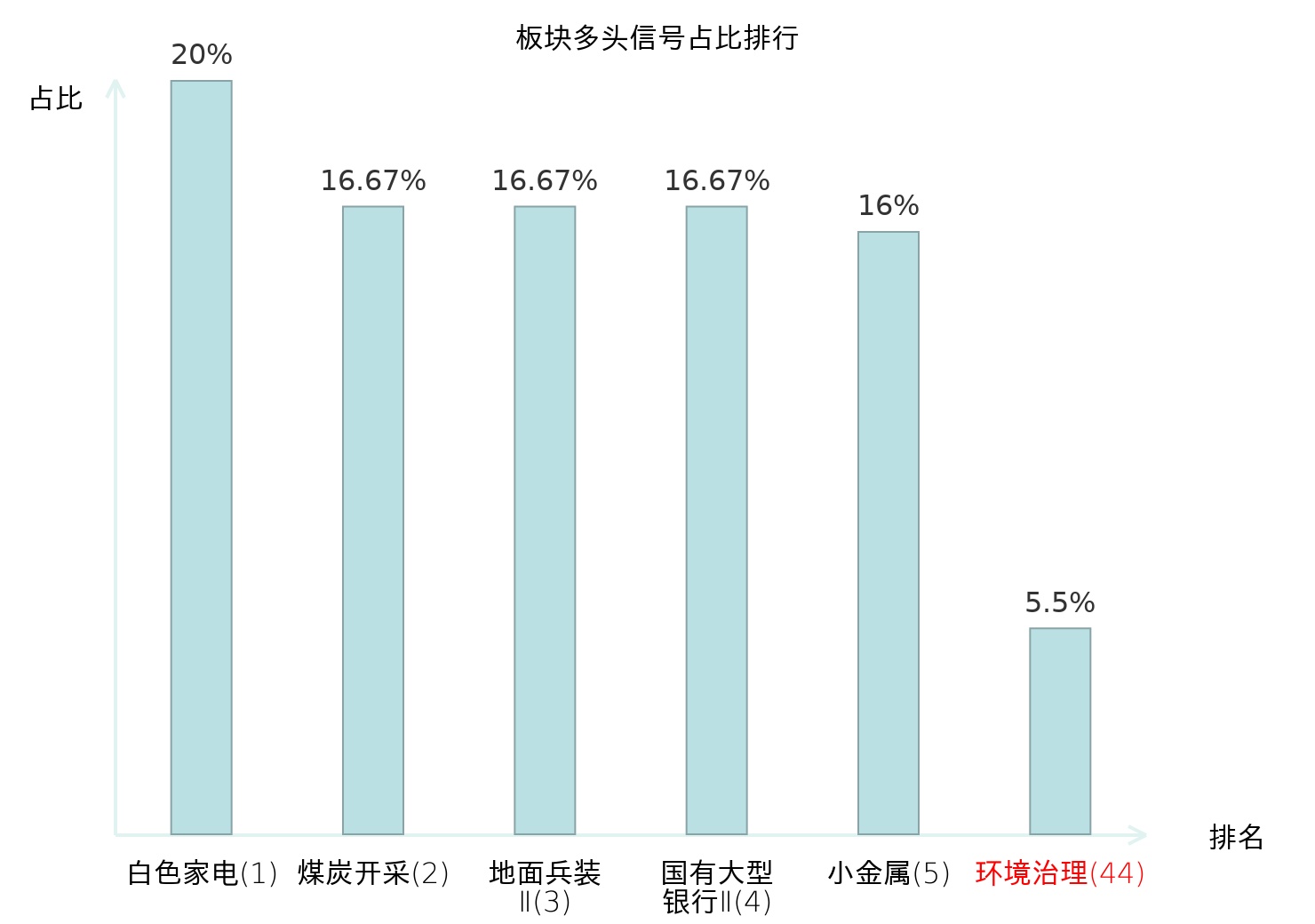全市场所有行业板块中主力多头信号占比排名中,白色家电板块位居第一。国有大型银行Ⅱ板块名次提升最快,较昨日上升119位。