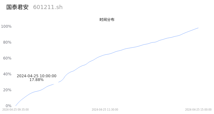 601211国泰君安2024年04月25日成交16.09万手,成交金额2.15亿元,相较昨日缩量5.83万手,换手率0.22%,成交清淡。