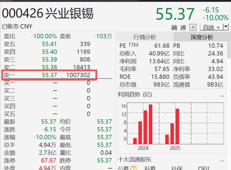 格隆汇2月2日|截止收盘,白银有色卖一现超66亿元巨额压单,兴业银锡卖一现超55亿元巨额压单,中金黄金卖一现超51亿元巨额压单,铜陵有色卖一现超34亿元巨额压单,山东黄金卖一现超28亿元巨额压单,江西铜业卖一现超15亿元巨额压单,山金国际卖一现超9亿元巨额压单。