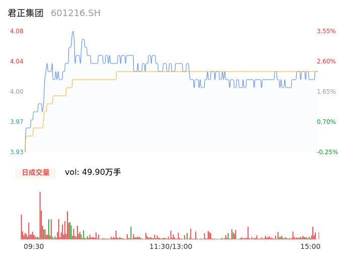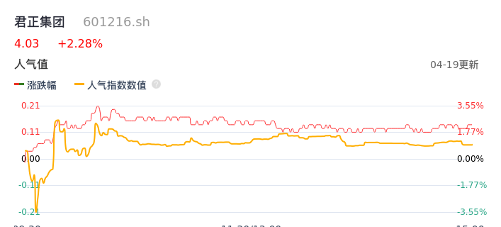 04月19日,君正集团收报4.03,股价涨幅2.28%,成交金额2.01亿元,换手率0.59%。