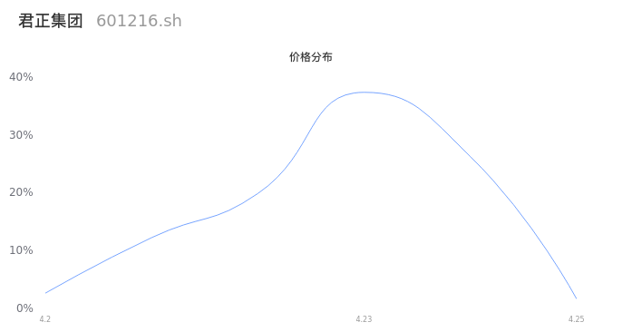 然后我们来看下当日成交的价格分布。经过分析发现,该股票当日成交价格波动低于10个最小波动价位,由于可以参考的样本量非常少,价格分布分析的结果不具有指导意义,下图仅供参考。