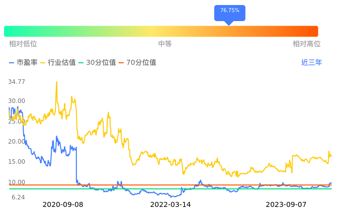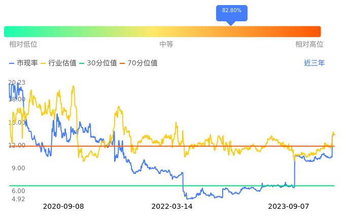 2023年09月08日,君正集团上涨1.19%收于4.24,今日成交金额8959.46万元。下文将从市盈率PETTM、市净率PB、市现率3个角度去分析公司估值情况。