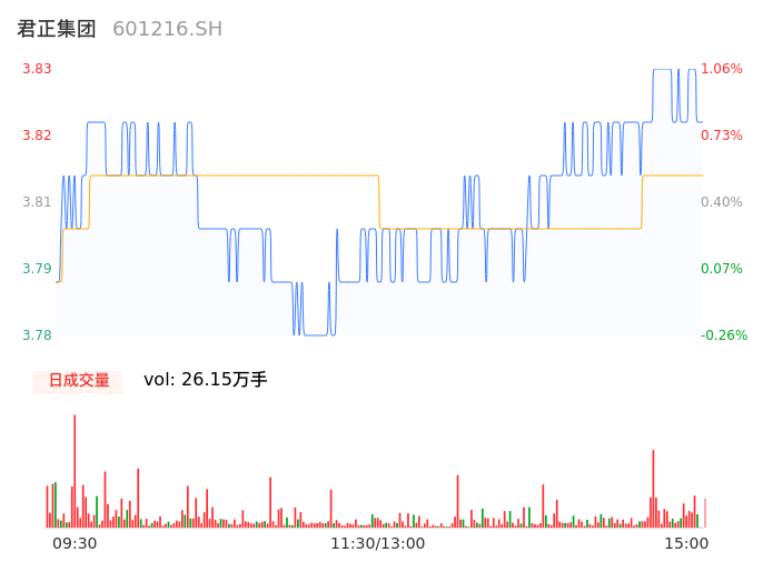 04月03日,君正集团收报3.82,股价涨幅0.79%,成交金额9955.31万元,换手率0.31%。