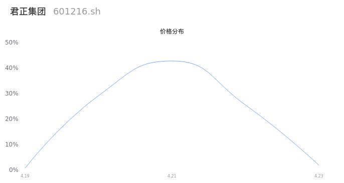 然后我们来看下当日成交的价格分布。经过分析发现,该股票当日成交价格波动低于10个最小波动价位,由于可以参考的样本量非常少,价格分布分析的结果不具有指导意义,下图仅供参考。