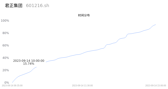 601216君正集团2023年09月14日成交15.00万手,成交金额6316.09万元,相较昨日缩量1.87万手,换手率0.18%,成交清淡。