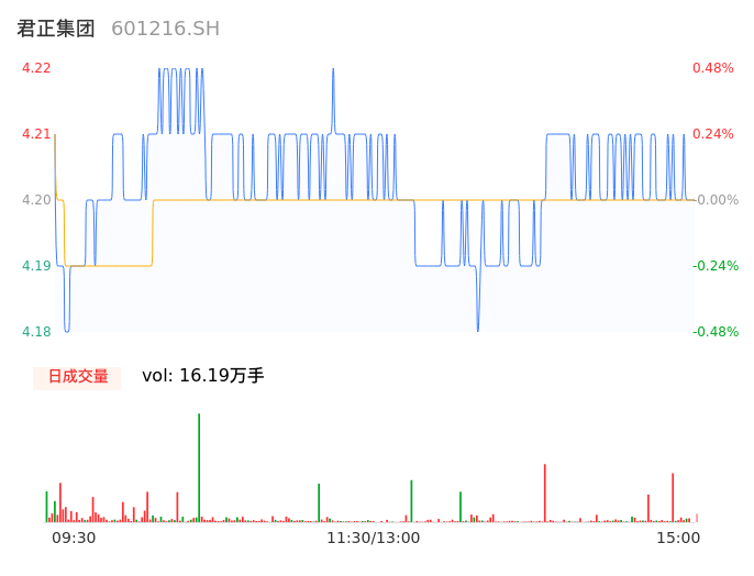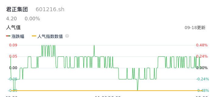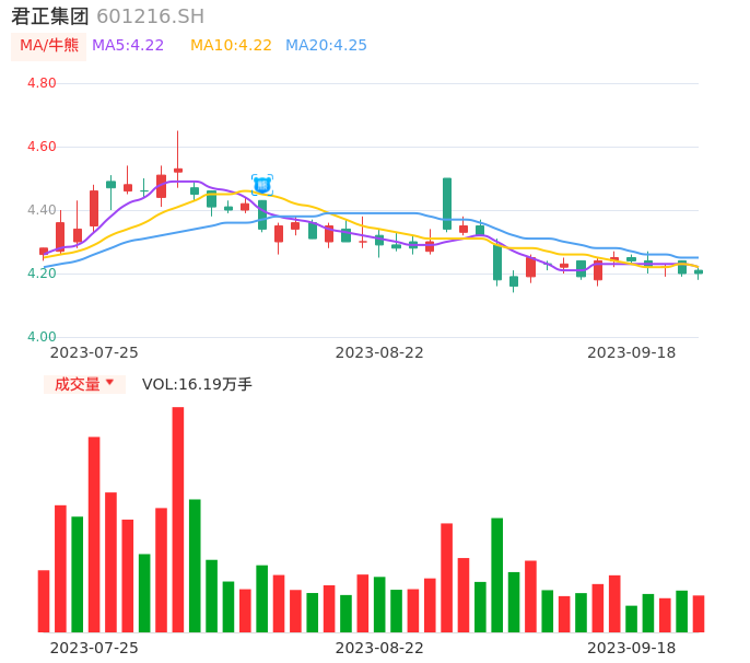 09月18日,君正集团收报4.20,股价涨幅0.00%,成交金额6800.96万元,换手率0.19%。