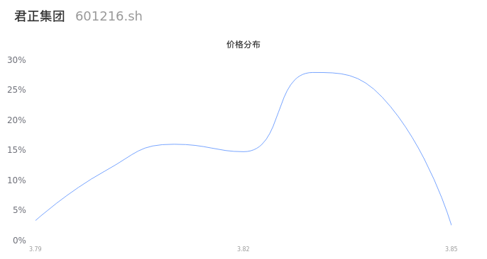 然后我们来看下当日成交的价格分布。经过分析发现,该股票当日成交价格波动低于10个最小波动价位,由于可以参考的样本量非常少,价格分布分析的结果不具有指导意义,下图仅供参考。