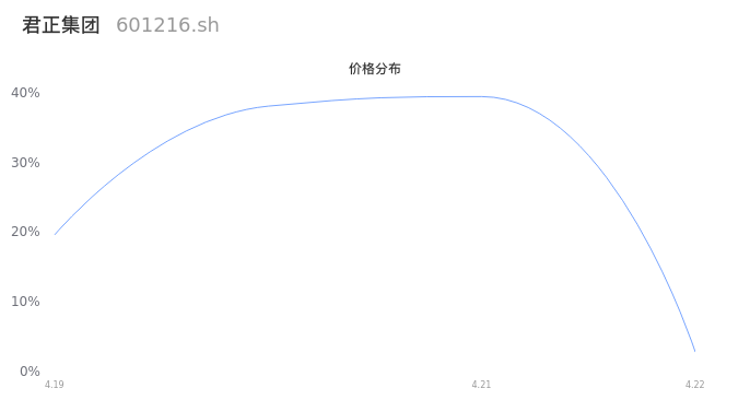 然后我们来看下当日成交的价格分布。经过分析发现,该股票当日成交价格波动低于10个最小波动价位,由于可以参考的样本量非常少,价格分布分析的结果不具有指导意义,下图仅供参考。