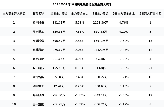 从主力资金流向来看,风电设备行业今日主力资金流入8.52亿元,在所有申万二级行业中排名:67/131。