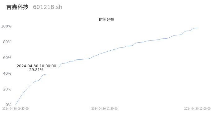 601218吉鑫科技2024年04月30日成交23.25万手,成交金额7275.43万元,相较昨日缩量3.83万手,换手率2.38%,成交清淡。