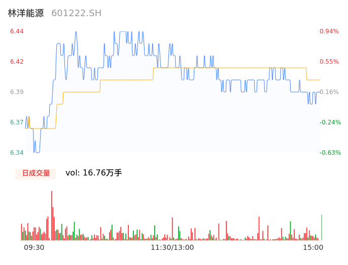 04月18日,林洋能源收报6.38,股价涨幅0.00%,成交金额1.07亿元,换手率0.81%。