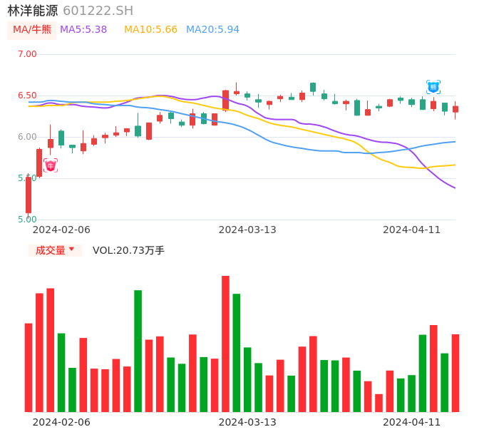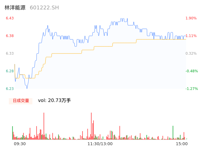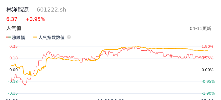 04月11日,林洋能源收报6.37,股价涨幅0.95%,成交金额1.32亿元,换手率1.01%。