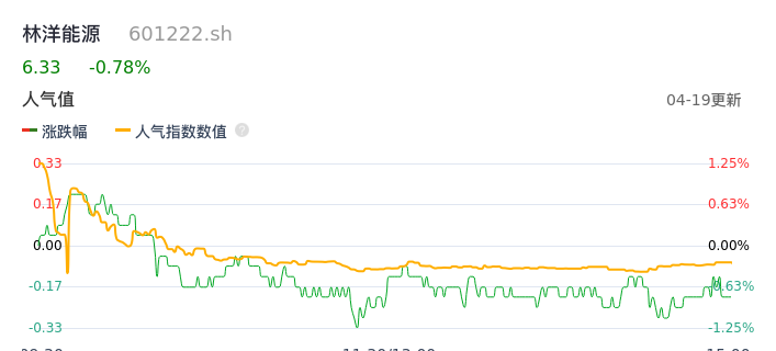 04月19日,林洋能源收报6.33,股价涨幅-0.78%,成交金额8435.82万元,换手率0.64%。