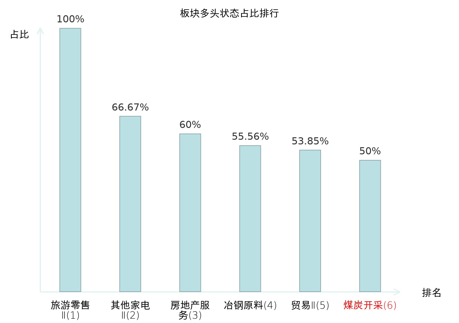 全市场所有行业板块中主力多头状态占比排名中,旅游零售Ⅱ板块位居第一。保险Ⅱ板块名次提升最快,较昨日上升65位。